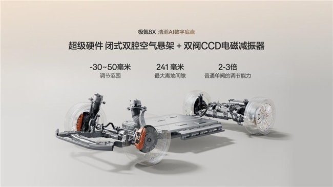 对于追求极致驾驶乐趣的用户,极氪8X同样给出了满分答卷。行业首个4S级认证的浩瀚AI数字底盘,搭配同级唯一的闭式双腔空气悬架、双阀CCD电磁减振器和主动稳定杆,让这辆“大块头”既能舒适巡航,也能激情劈弯。定海智能中枢实时调整车辆姿态,实现“一车千面”的驾控体验。
